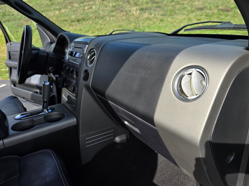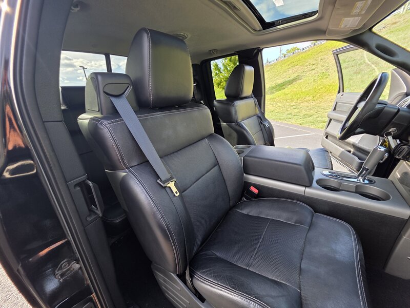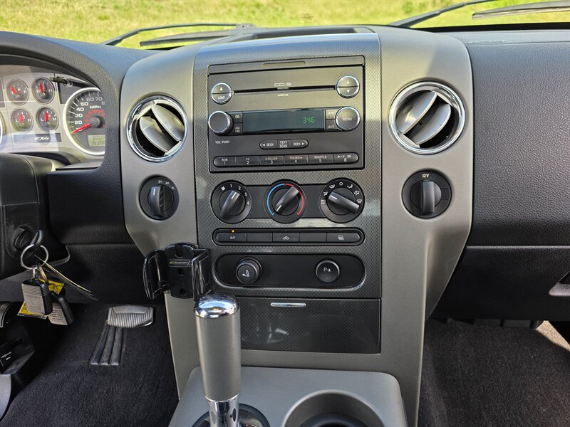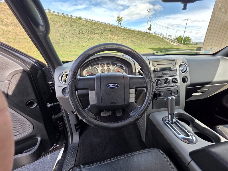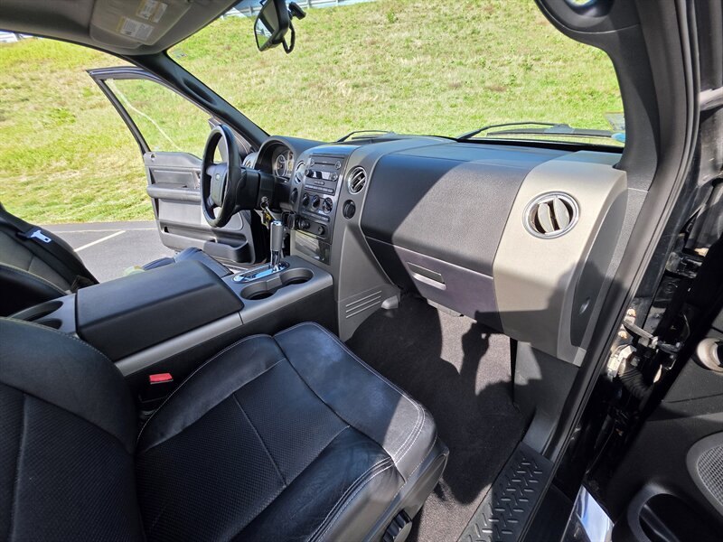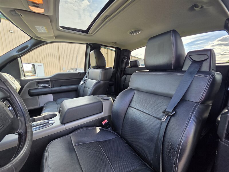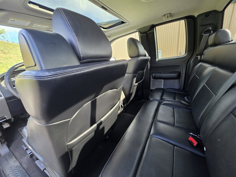 This 2008 Ford F-150 FX4 comes equipped with a robust Triton 5.4L V8 engine, delivering 300hp and 365ft. lbs. of torque. Standard features include a Heavy Duty Bed Liner for added durability, a Power Moonroof for a touch of luxury, and a Reverse Camera System for enhanced safety. Inside, enjoy the comfort of Leather Captains Chairs with a Console and Floor Shifter. The Trailer Tow Package ensures you're ready for any hauling needs, while the 20" Machined Aluminum Wheels and LT275/65R18C OWL All-Terrain Tires provide both style and performance. Additional features like the Power Sliding Rear Window and Sliding Rear Window with Privacy Glass add convenience and functionality to this truck. With a sleek Black Clearcoat exterior and Black interior, this F-150 FX4 showcases a timeless and rugged aesthetic. Boasting low mileage of below 92,000 miles, averaging less than 6,000 miles per year, this vehicle is in excellent overall condition, ready to tackle any adventure that comes its way.