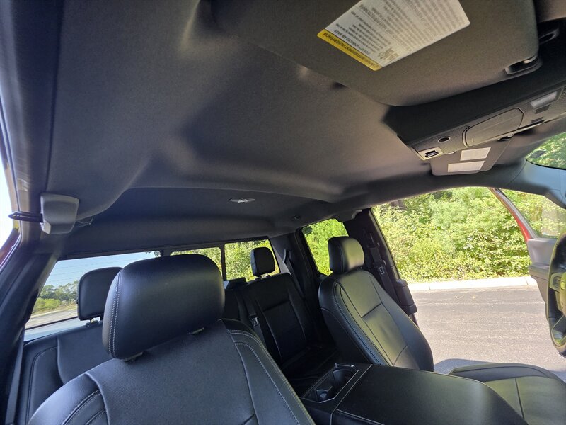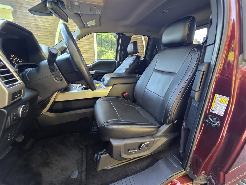 - Equipment Group 502AIncludes vehicle with standard equipment, BLIS (Blind Spot Information System) with Cross-Traffic Alert (BLIS sensor in taillamp), remote start system, remote tailgate release, reverse sensing system, quad beam LED headlamps and LED taillamps, automatic high beam lights with rain-sensing windshield wipers, LED side mirror spotlights, power folding, power glass side view mirrors with heat, turn signals, memory, auto-dimming feature on drivers side, high-intensity LED security approach lamps, and chrome skull caps, one 110V/400W outlet (two with bucket seats), universal garage door opener, power tilt and telescoping steering column with memory, heated steering wheel, heated and cooled leather-trimmed bucket seats, 10-way power driver and passenger seats, memory driver seat, flow-through console with floor shift, Sony single-CD player, HD radio, SiriusXM Satellite Radio, voice-activated navigation with SiriusXM Traffic and Travel Link with five years of service in the 48 contiguous United States and D.C., and Lariat Chrome Appearance Package including 18 inch chrome-like PVD wheels, 275/65R18 OWL all-terrain tires, chrome angular step bars, chrome door handles with body-color bezel, two chrome front tow hooks, chrome single-tip exhaust, chrome skull caps on exterior mirrors, and chrome three-bar style grille with chrome surround and chrome mesh insert. When Two-Tone Paint is selected, front and rear chrome bumpers are replaced with front and rear accent-color bumpers, and standard body-color wheel lip moldings are replaced with accent-color wheel lip moldings.