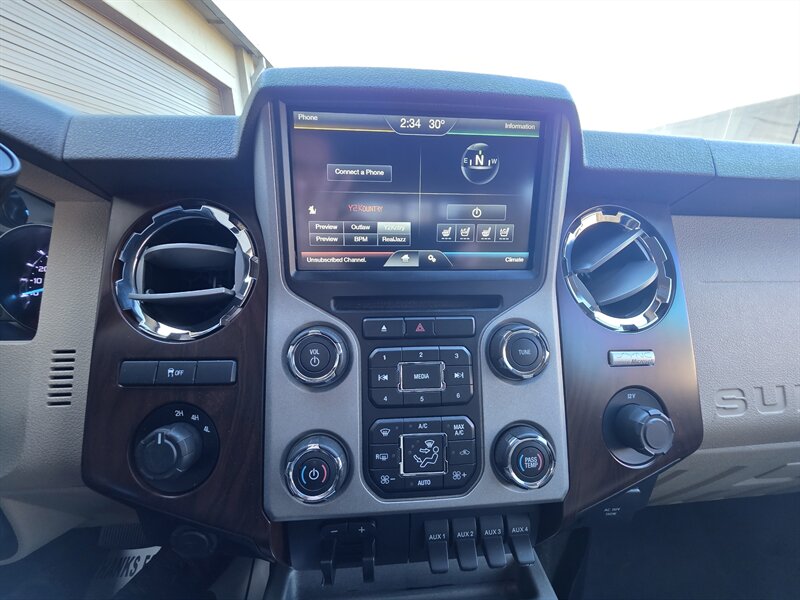 Introducing the 2015 Ford F-350 Super Duty Lariat, a robust and versatile truck designed for both work and play. Powered by a 6.2L Flex Fuel V8 engine, it delivers 316 horsepower and 397 ft-lbs of torque, providing the strength needed for heavy-duty tasks. This truck features the Lariat Interior Package, which includes premium leather seating, a power-adjustable driver's seat, and a high-quality sound system for an enhanced driving experience. The Snow Plow Prep Package prepares the vehicle for winter challenges, making it ideal for cold-weather work. With a 6.8 Ft. short bed and a 3.73 electronic locking axle ratio, this F-350 offers practical functionality and improved traction. Additionally, the upfitter switches allow for easy customization and accessory integration. Overall, this vehicle is in excellent condition, combining performance, comfort, and capability for any job or adventure.