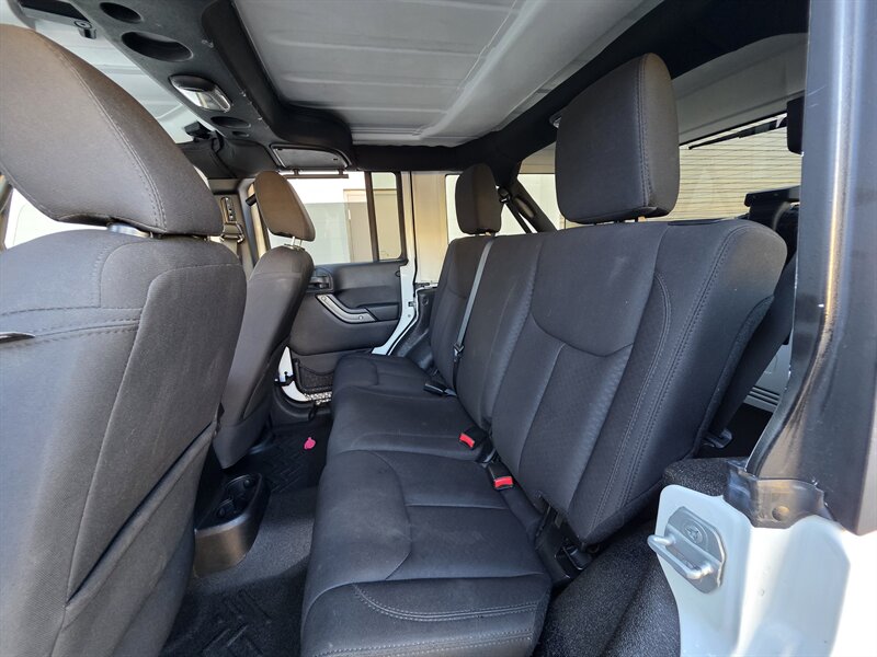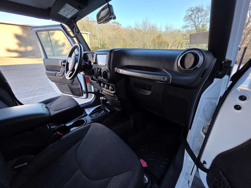 Introducing the 2015 Jeep Wrangler Unlimited Sport, a rugged and versatile SUV designed for both on-road and off-road adventures. Powered by a robust 3.6L V6 engine, delivering 285 horsepower and 260 ft-lbs of torque, this vehicle ensures a thrilling driving experience. It comes equipped with the Connectivity Group, featuring Bluetooth connectivity, USB ports, and an enhanced audio system for seamless integration with your mobile devices. This model includes the Quick Order Package 24S, which enhances its features with 17-inch alloy wheels, automatic headlights, and a 115-volt power outlet, providing convenience wherever you go. Additionally, the optional Black 3-Piece Hard Top offers versatility for various weather conditions, while the comfortable cloth seats ensure a pleasant ride. With less than 88,000 miles on the odometer, averaging under 8,000 miles per year, this Jeep Wrangler Unlimited Sport is in excellent overall condition, making it a reliable choice for any adventure enthusiast. Experience the perfect blend of capability, comfort, and style with this exceptional vehicle.
