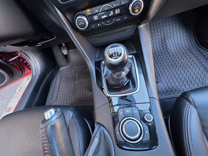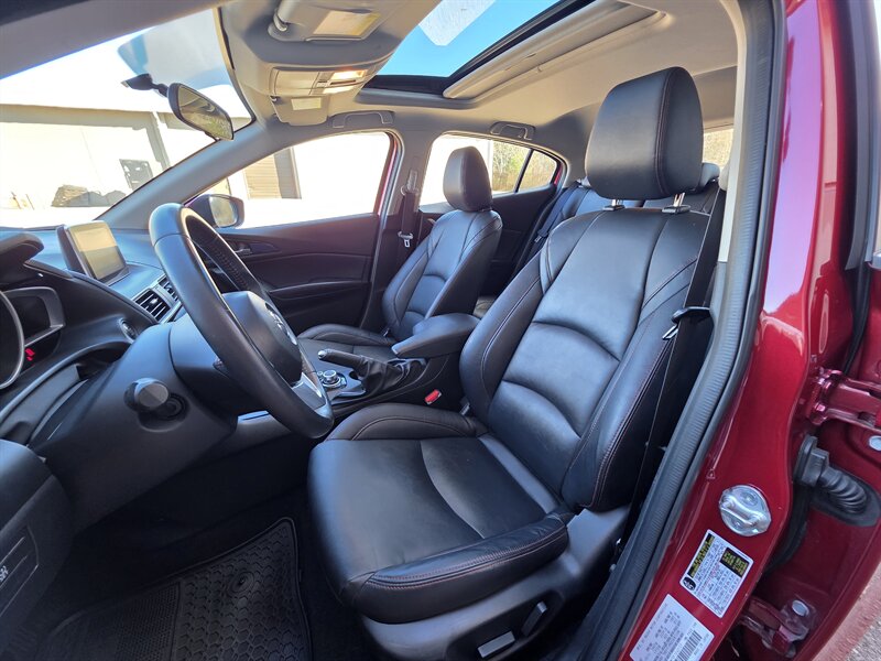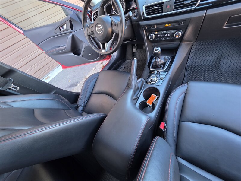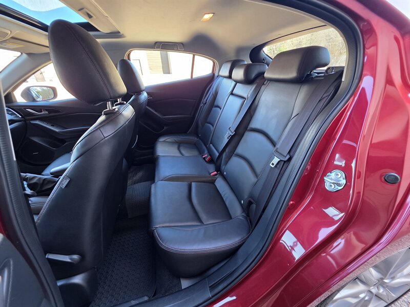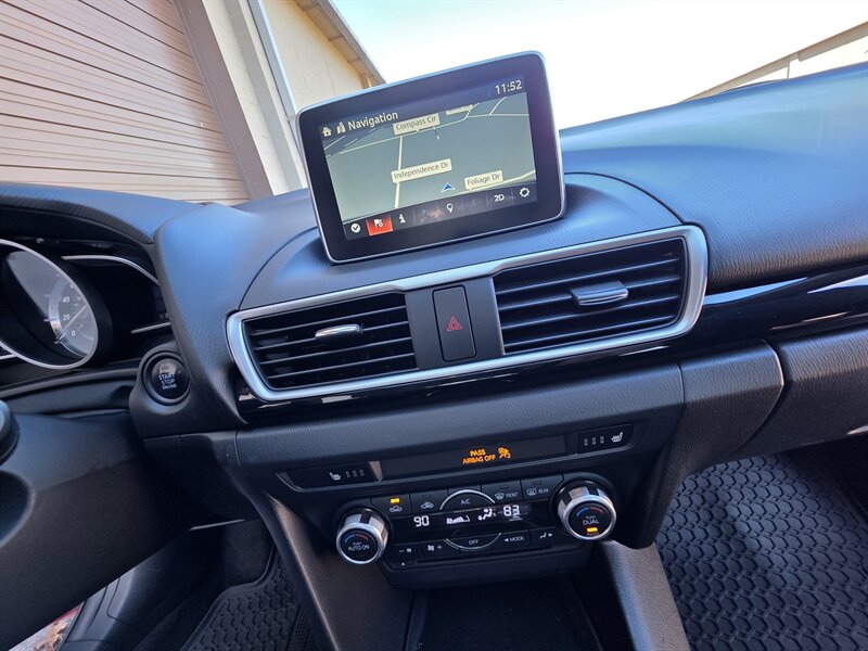 Experience the perfect blend of style and performance with this 2015 Mazda Mazda3 i Grand Touring, featuring a striking Soul Red Metallic exterior and a sophisticated Black interior. Powered by the efficient SKYACTIV-G 2.0L I4 engine, this sedan delivers 155 horsepower and 150 lb-ft of torque, ensuring an engaging driving experience. With less than 94,000 miles on the odometer—averaging under 9,000 miles per year—this vehicle boasts excellent mileage, achieving 29 MPG in the city and an impressive 40 MPG on the highway. Factory default features include a premium audio system, leather-trimmed seats, a navigation system, and advanced safety technologies, ensuring both comfort and peace of mind on every journey. Additionally, this Mazda3 is equipped with optional features such as rear parking sensors, enhancing convenience in urban settings. With its excellent overall condition, this Mazda3 is ready to deliver reliability and enjoyment for years to come.