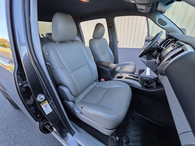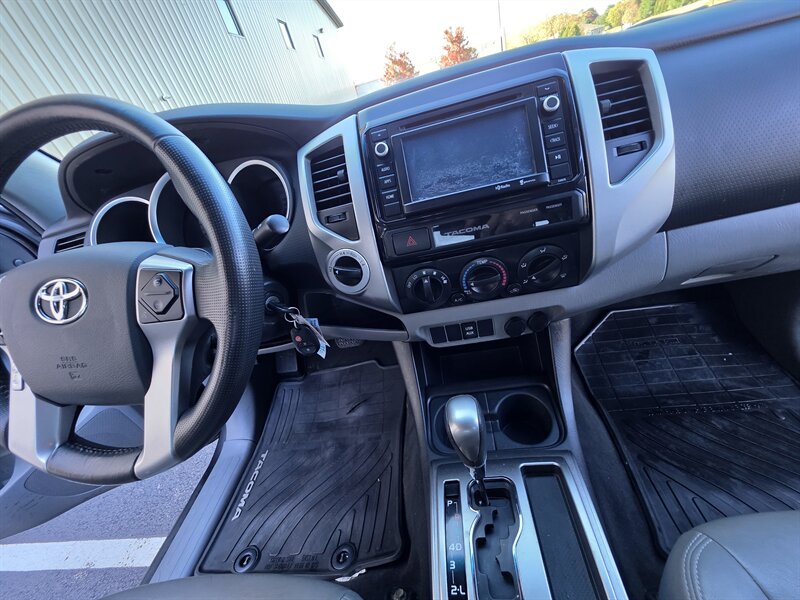 The 2015 Toyota Tacoma V6 offers a robust driving experience powered by a 4.0L V6 engine, delivering 236 horsepower and 266 ft-lbs of torque. This model features the SR5 Extra Value Package, enhancing both comfort and convenience. Standard features include a well-designed cabin with durable materials, a touchscreen infotainment system, Bluetooth connectivity, and a rearview camera for added safety. The Tacoma is equipped with a sturdy bed for hauling and towing needs, complemented by the optional V6 Tow Package, making it a versatile choice for both work and play. The truck rides on 16-inch alloy wheels, providing a blend of style and functionality. With fuel efficiency rated at 16 MPG in the city and 21 MPG on the highway, it strikes a balance between performance and economy.