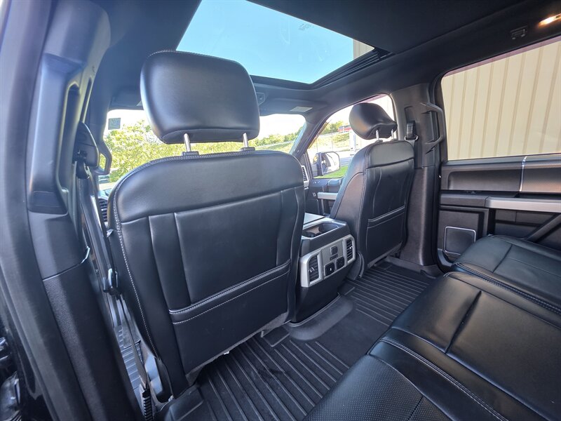- Equipment Group 502AIncludes vehicle with standard equipment, BLIS (Blind Spot Information System) with Cross-Traffic Alert (BLIS sensor in LED taillamp), remote start system, remote tailgate release, reverse sensing system, quad beam LED headlamps and LED taillamps, automatic high beam lights with rain-sensing windshield wipers, heated windshield wiper park, LED fog lamps, LED side mirror spotlights, power folding, power glass side view mirrors with heat, turn signals, memory, auto-dimming feature on drivers side, high-intensity LED security approach lamps, one 110V/400W outlet (two with bucket seats), universal garage door opener, power tilt and telescoping steering column with memory, heated steering wheel, heated and cooled leather-trimmed bucket seats, 10-way power driver and passenger seats, memory driver seat, heated second row seats, flow-through console with floor shift, B&O PLAY Premium single-CD player, HD radio, SYNC Connect (door lock and unlock, schedule specific time for remote start, locate parked vehicle, and check vehicle status using compatible smart phone), SiriusXM Satellite Radio, voice-activated touchscreen navigation with pinch to zoom capability, SiriusXM Traffic and Travel Link with five years of service in the 48 contiguous United States and D.C., and Lariat Chrome Appearance Package including 18 inch chrome-like PVD wheels, 275/65R18 OWL all-terrain tires, chrome angular step bars, chrome door handles with body-color bezel, two chrome front tow hooks, chrome single-tip exhaust, chrome skull caps on exterior mirrors, and chrome three-bar style grille with chrome surround and chrome mesh insert. When Two-Tone Paint is selected, front and rear chrome bumpers are replaced with front and rear accent-color bumpers, and standard body-color wheel lip moldings are replaced with accent-color wheel lip moldings.