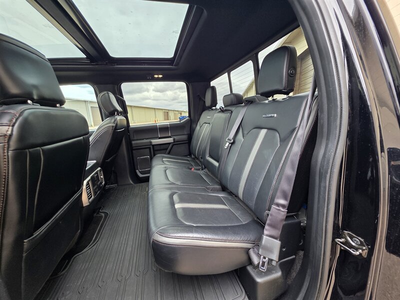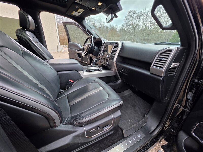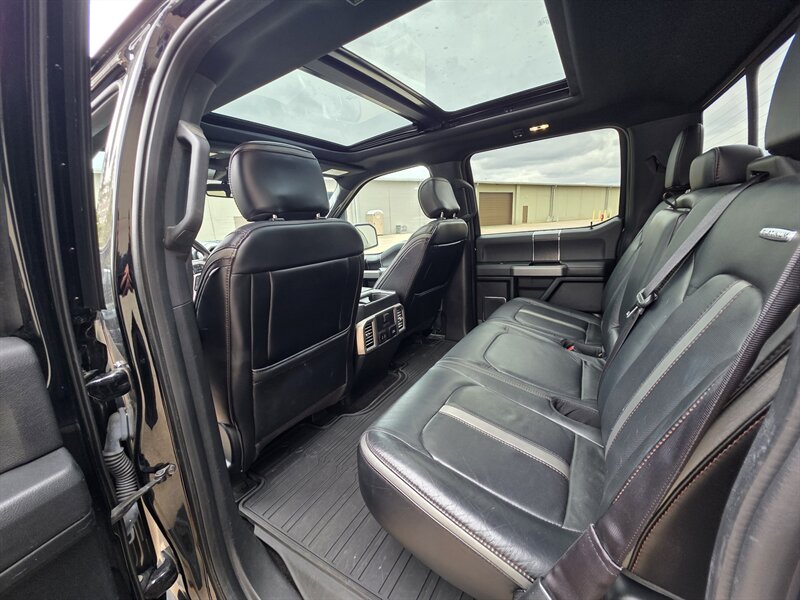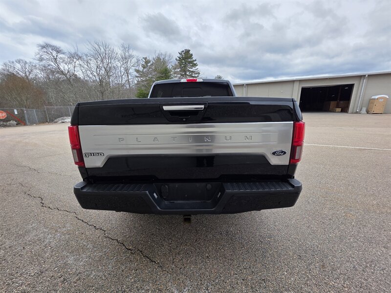 Dominate the road in this 2018 Ford F-150 Platinum — powered by the 5.0L V8 (395 hp, 400 lb-ft). Equipped with Equipment Group 701A and the FX4 Off-Road package, plus Extended Range 36-gallon fuel tank, 3.55 electronic locking axle and a moonroof. The Platinum trim ships from the factory with premium leather-trimmed power front seats with heating/ventilation and driver memory, heated rear seats, dual-zone automatic climate control, an advanced touchscreen infotainment system with Bluetooth and navigation capability, a full complement of safety tech including rearview camera and blind-spot/cross-traffic alerts, plus upscale exterior trim and upgraded wheels. FX4 adds skid plates, off-road-tuned shocks and hill-descent control. Excellent overall condition — don’t wait.