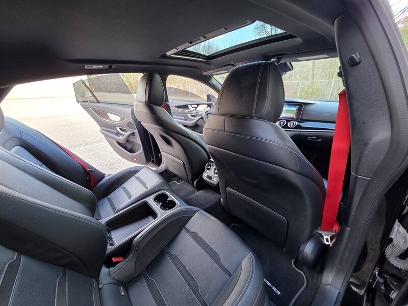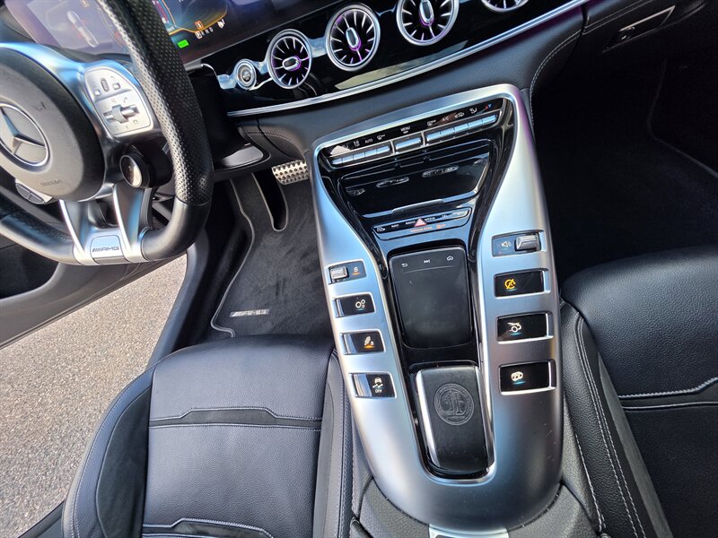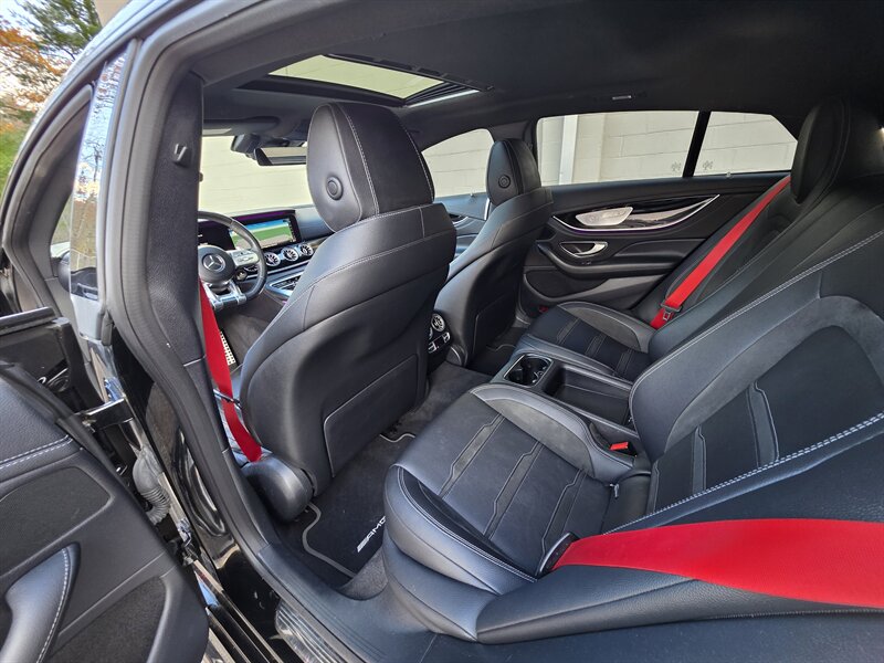 Introducing the stunning 2019 Mercedes-Benz AMG GT 53, a luxurious performance sedan that seamlessly combines power and elegance. Under the hood, this remarkable vehicle is equipped with a 3.0L Turbo I6 engine, delivering an exhilarating 429 horsepower and 384 ft-lbs of torque, ensuring a thrilling driving experience. With less than 50,000 miles on the odometer, averaging fewer than 8,000 miles per year, this AMG GT 53 is in excellent overall condition, embodying both performance and refinement. This model comes standard with a wealth of premium features, including a sophisticated infotainment system with a high-resolution display, smartphone integration, and advanced navigation capabilities. The meticulously crafted interior boasts high-quality materials, comfortable seating, and a driver-centric layout designed for an engaging driving experience. Additionally, this vehicle is enhanced with the Driver Assistance Package, providing cutting-edge safety features to ensure peace of mind on every journey. Among the optional features included are the Burmester High-End 3D Surround Sound System, which elevates your audio experience, and the AMG Performance Exhaust System, enhancing the vehicle's already thrilling sound profile. The Black Piano Lacquer Interior Trim and Red Seat Belts add a touch of elegance and sportiness, while the Heated Steering Wheel and Heated Rear Seats ensure comfort in any climate. The AMG Night Package provides a bold aesthetic, complemented by the 21-inch AMG Forged Cross-Spoke Black Wheels, making a striking impression on the road. The Head