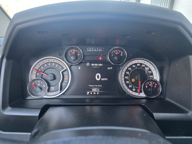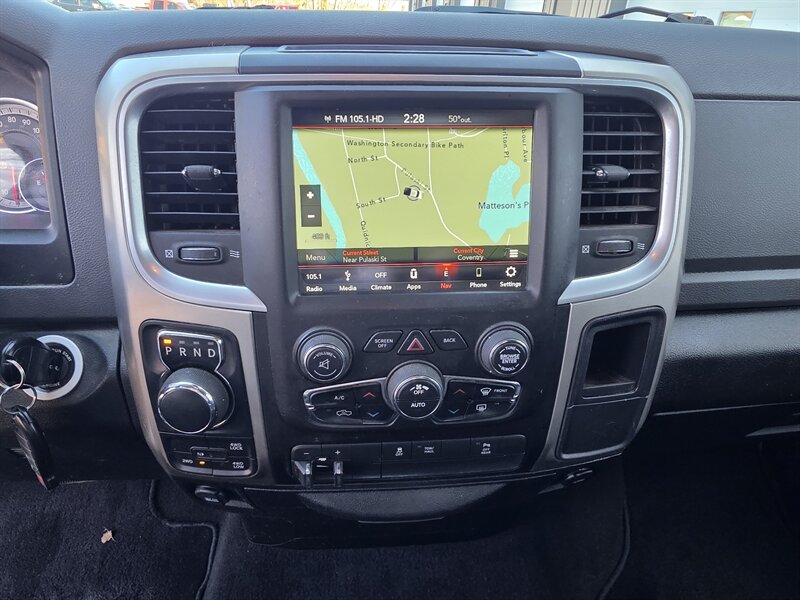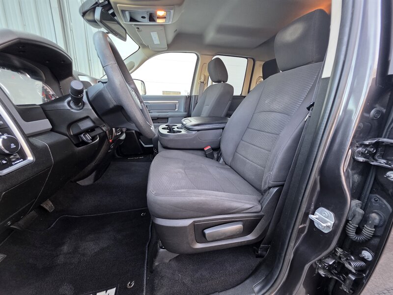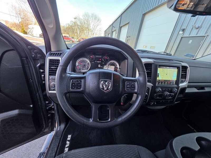2019 RAM 1500 Classic Warlock — HEMI 5.7L V8 (395 hp, 410 lb-ft). Exterior: Granite Crystal Metallic Clear Coat. Interior: Diesel Gray/Black. Fuel economy: 15 MPG city / 21 MPG highway. Vehicle is in excellent overall condition. Key factory features: - Warlock appearance package with blacked-out exterior accents, bold RAM grille and black wheels for a distinctive, rugged look. - Durable Diesel Gray/Black cloth seating surfaces and trim, seating for up to six with practical center storage and robust finishes designed for work and daily use. - Uconnect infotainment with Bluetooth hands-free calling, AM/FM audio and USB/AUX inputs, plus steering-wheel audio and phone controls. - Convenience features including air conditioning, power windows and locks, remote keyless entry, cruise control and tilt steering. - Safety and chassis: multistage front airbags, side curtain airbags, anti-lock brakes (ABS), electronic stability and traction control, rearview camera, and trailer-sway control for towing confidence. - Built to work: heavy-duty truck underpinnings with a roomy cargo bed and factory engineering to support towing and hauling tasks. Contact us for a test drive or to confirm additional options and service history.