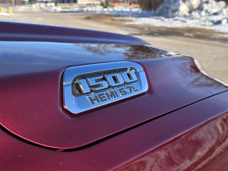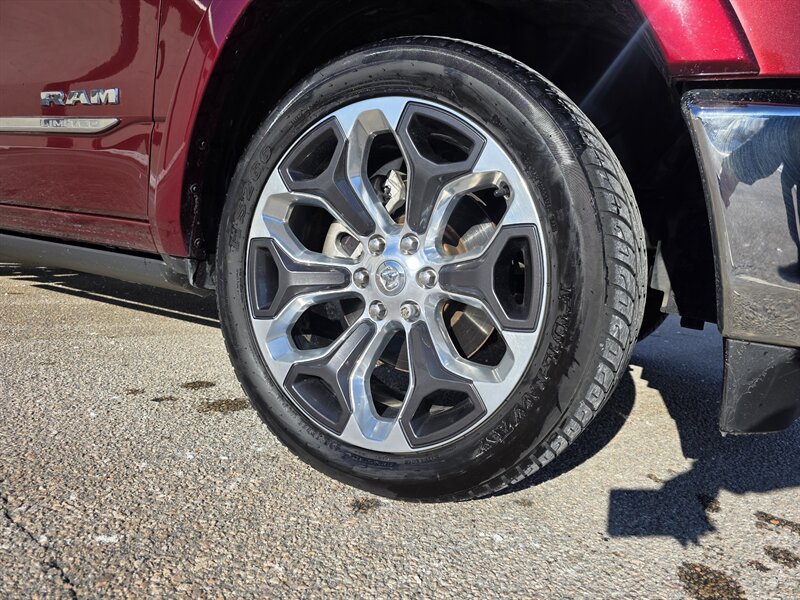 2019 RAM 1500 Limited — HEMI 5.7L V8 (395 hp / 410 lb-ft). Excellent overall condition. Equipped with Bed Utility Group, Limited Level 1 Equipment Group and Protection Group. Optional upgrades include 33-gallon fuel tank, Delmonico Red Pearl Coat, tri-fold tonneau cover, 3.92 axle ratio with anti-spin rear differential, dual-pane panoramic sunroof, trailer brake controller, and 22 x 9 in. painted/polished wheels with inserts.