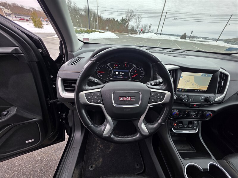 2020 GMC Terrain SLT — 2.0L Turbo I4, 252 hp / 260 lb-ft. Equipped with Black Edition, Driver Alert Package I, Preferred Package, and the Dual SkyScape Sunroof. Factory features include premium leather-appointed seating, heated front seats and heated steering wheel, power-adjustable driver’s seat with lumbar support, dual-zone automatic climate control, 60/40 split-folding rear seats and a versatile cargo area. Infotainment features smartphone integration (Apple CarPlay/Android Auto), Bluetooth and USB connectivity plus a rear vision camera. Standard safety and chassis equipment include stability control, ABS, traction control and multiple airbags. Vehicle is in excellent overall condition.