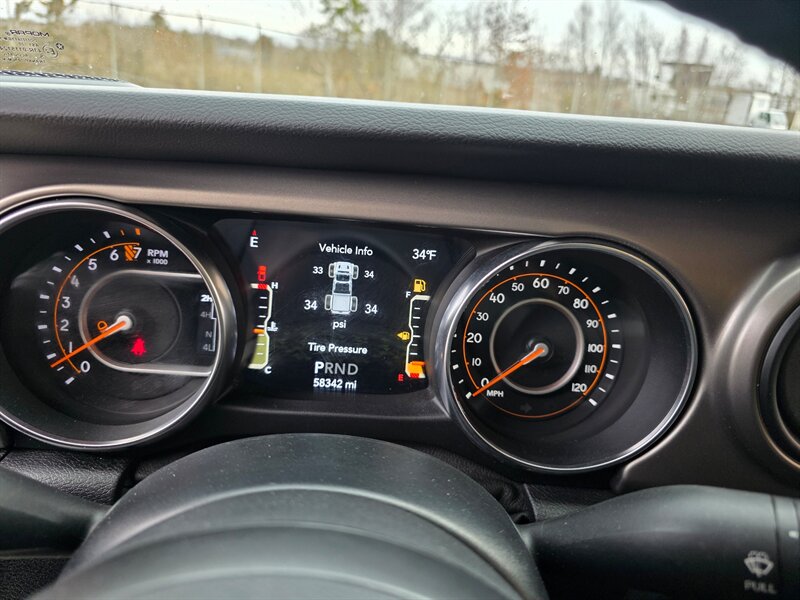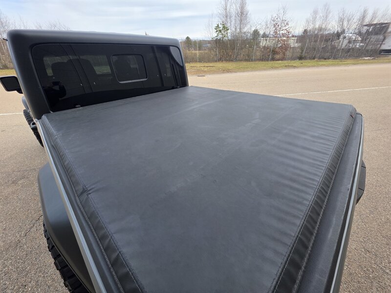 2020 Jeep Gladiator Sport S — powered by the 3.6L V6 (285 hp / 260 lb-ft), this clean, well-maintained crew-cab pickup has under 58,000 miles (avg. <9,000 mi/yr) and is in excellent overall condition. It includes Cold Weather Group, Convenience Group and Quick Order Package 24S, plus Granite Crystal Metallic Clear Coat paint, a MOPAR soft tri-fold tonneau cover and a spray-in bedliner. Factory-standard equipment highlights include an 8-speed automatic transmission mated to a part-time 4x4 system, Uconnect infotainment with a 7-inch touchscreen and Apple CarPlay/Android Auto compatibility, Bluetooth hands-free calling and USB connectivity, cloth seating with a folding rear bench, power windows and door locks, remote keyless entry, cruise control and air conditioning. Safety and driver aids include ABS, traction and electronic stability control, multiple airbags and a rearview camera. Durable exterior and utility features such as 17-inch wheels, full-size spare, front tow hooks and a robust bed design make this Gladiator equally capable for work or weekend adventures.