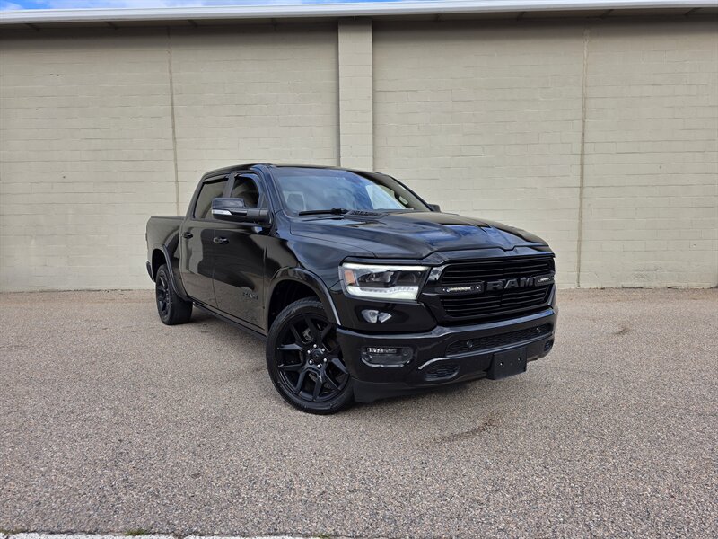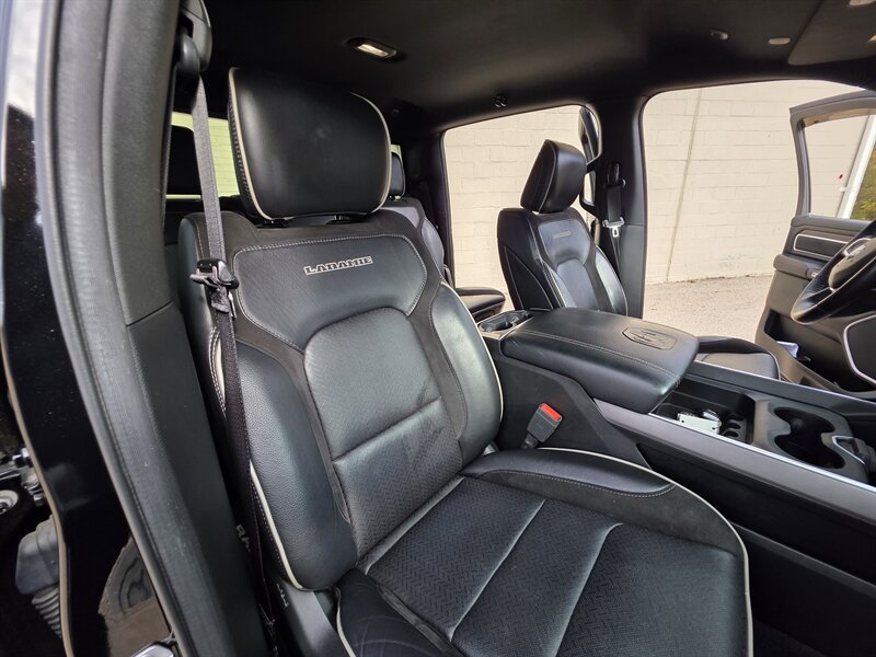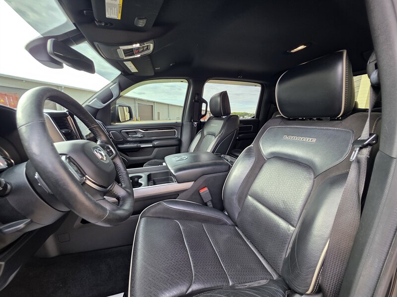 - Laramie Level 2 Equipment GroupIncludes blind-spot monitoring with trailer coverage and rear cross path detection, ParkSense front and rear park assist system w/stop, automatic high beam headlamp control, rain-sensitive windshield wipers, 8.4 inch touch screen display, Apple Carplay, Android Auto, AM/FM radio, HD radio, integrated voice command with Bluetooth, media hub with USB and auxiliary audio inputs, GPS navigation, SiriusXM satellite radio with Traffic Plus, Travel Link and Guardian, Harman Kardon 19 speaker audio system with 900 watts, rear heated and recline 60/40 split folding seat, rear underseat compartment storage, and remote tailgate release.