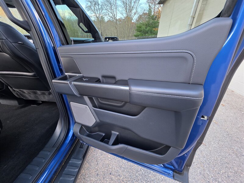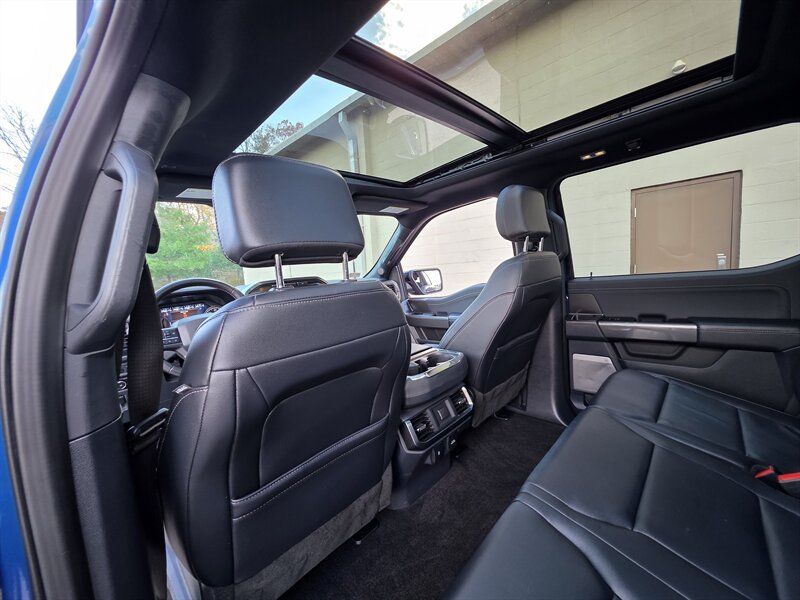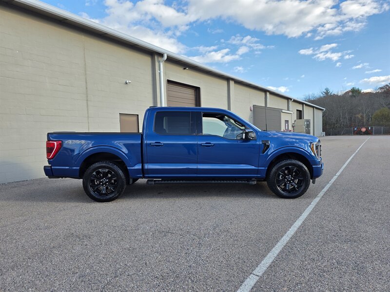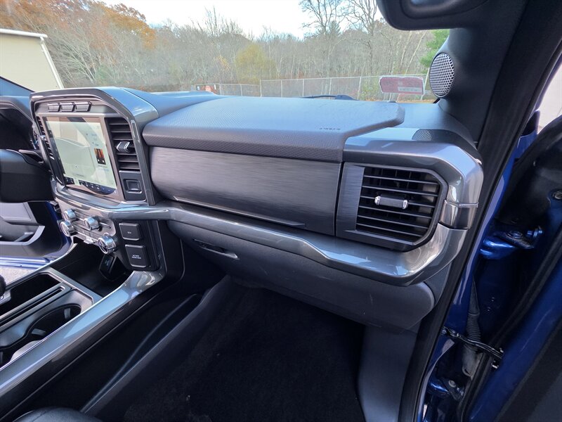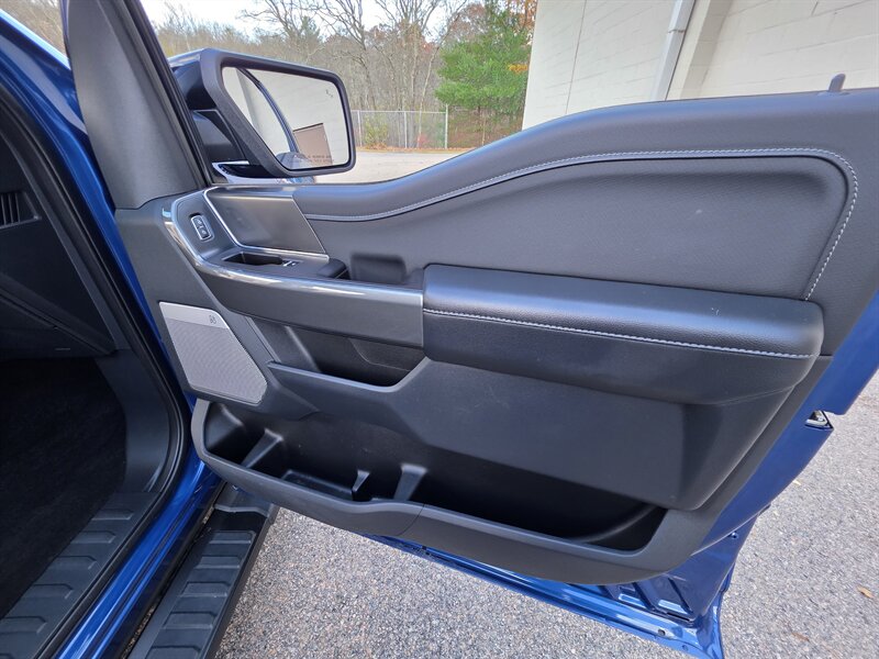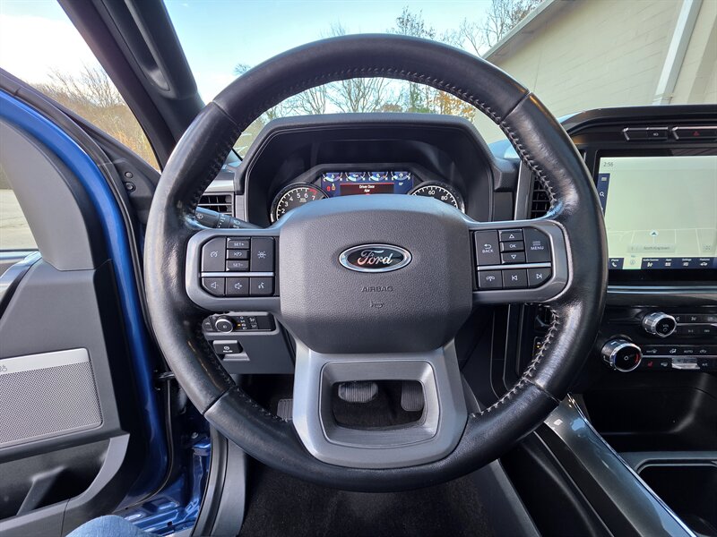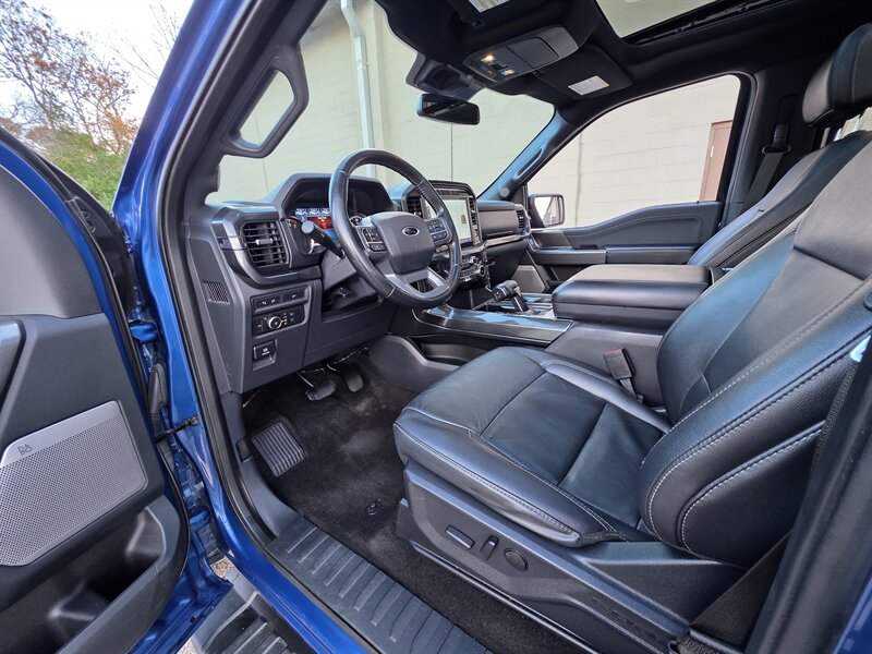 Introducing the 2022 Ford F-150 XLT, a powerful and versatile truck designed for both performance and comfort. Beneath the hood, this model is equipped with an EcoBoost 3.5L Twin Turbo V6 engine, delivering an impressive 400 horsepower and 500 ft-lbs of torque, ensuring robust capability for any task. The exterior, finished in a striking Atlas Blue, is complemented by the Black Appearance Package and the XLT Sport Appearance Package, which enhance its bold, modern aesthetic. The 20-inch gloss black painted aluminum wheels paired with all-terrain tires provide both style and functionality. Inside, the cabin features a sleek black interior that combines comfort with advanced technology. The Equipment Group 302A includes essential features such as automatic headlights, a rearview camera, and Ford’s Co-Pilot360 suite of driver-assist technologies, ensuring a safe and confident driving experience. Additional premium features include the B&O Sound System by Bang & Olufsen, delivering an immersive audio experience, and a twin panel panoramic moonroof that allows natural light to fill the cabin. The 8-way power driver’s seat with power lumbar support ensures personalized comfort for every drive, while the connected built-in navigation system keeps you on track. Overall, this 2022 Ford F-150 XLT is in excellent condition, making it a perfect choice for those seeking a blend of rugged capability and refined comfort.