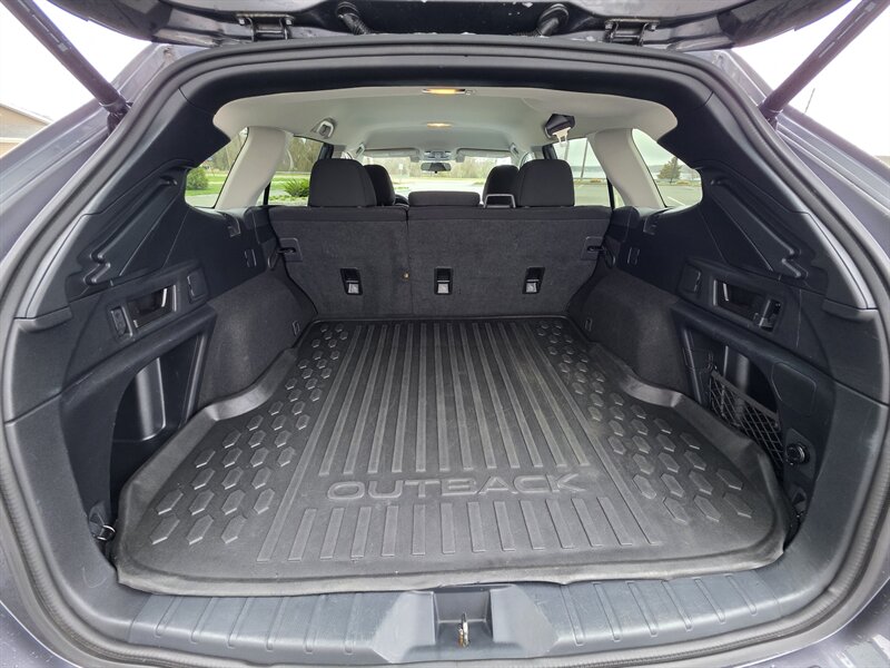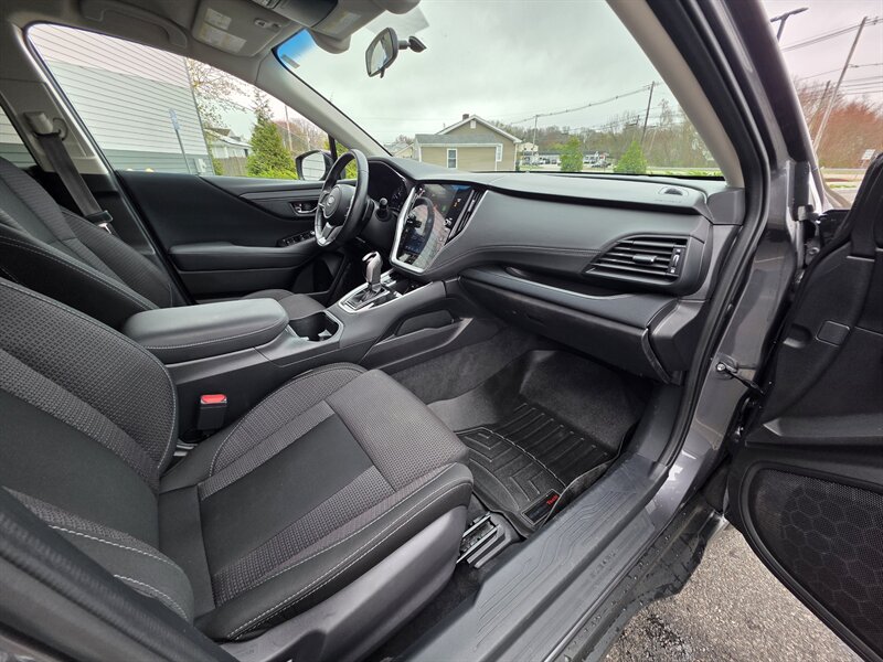 2022 Subaru Outback Premium in excellent overall condition. Powered by a 2.5L H4 boxer engine (182 hp, 178 lb-ft) paired with Subaru’s Lineartronic CVT and Symmetrical All-Wheel Drive, this Outback returns an EPA 26 MPG city / 33 MPG highway. Factory equipment includes comprehensive safety and stability systems (ABS, traction and vehicle dynamics control, multiple airbags, tire pressure monitoring, rearview camera), Subaru STARLINK infotainment with Apple CarPlay/Android Auto and Bluetooth, comfortable cloth seating, roof rails, convenient power accessories, and 8.7 inches of ground clearance for light-duty off-road capability. Added options on this vehicle: Blind Spot Detection with Rear Cross Traffic Alert, Hands-Free Power Gate, plus All-Weather Floor Liners and Splash Guards.